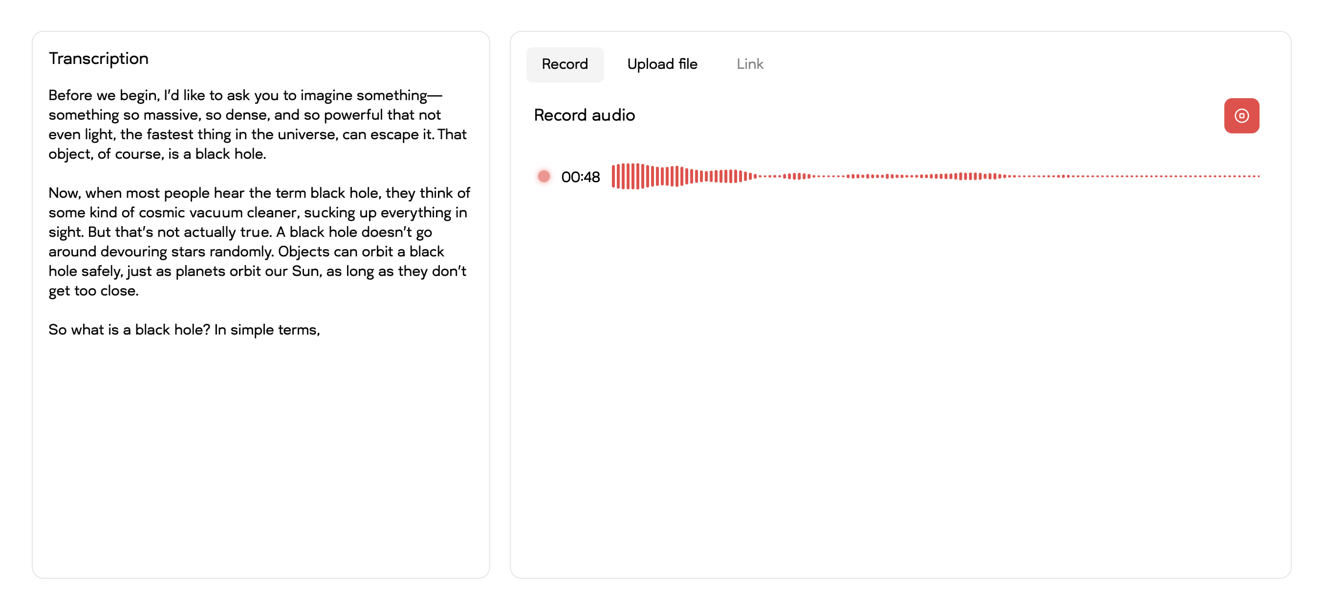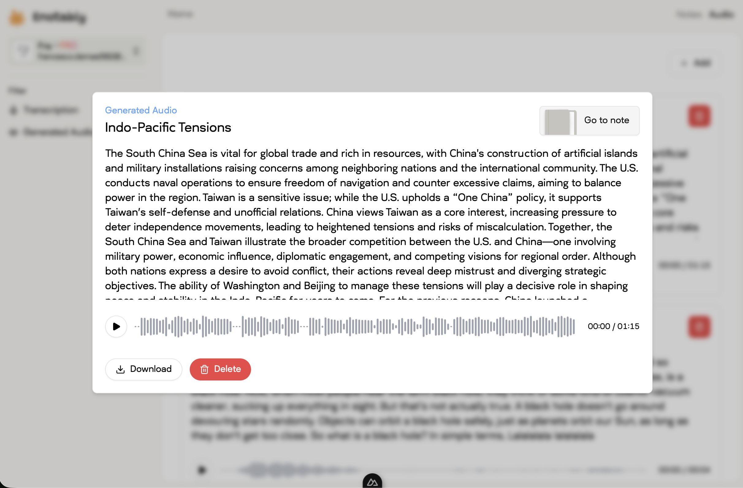 Convert your notes to natural audio. Perfect for reviewing content while multitasking or for accessibility needs.